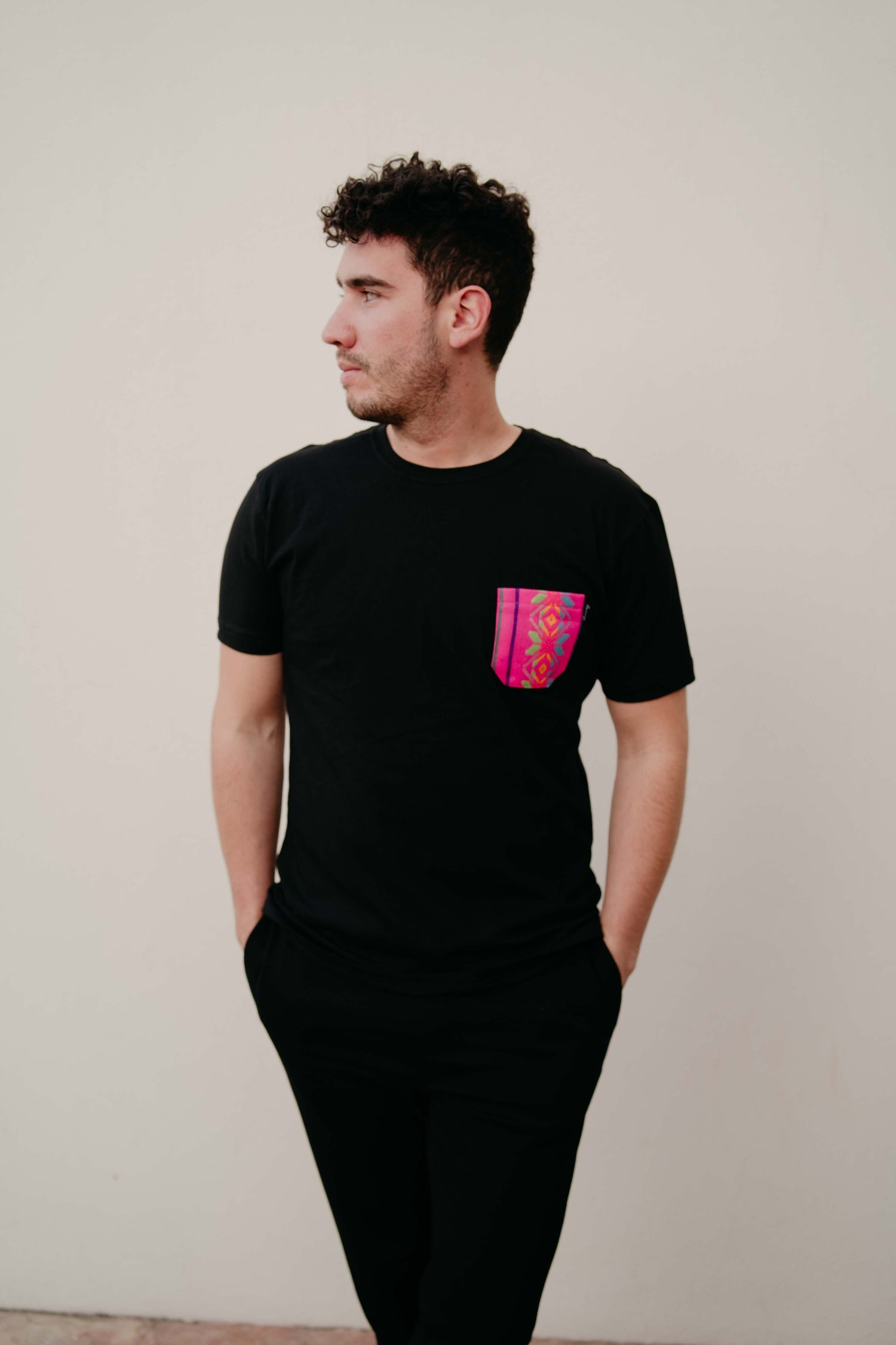 Todo color de rosa, combina playera con blusa mexicana en tonalidades rosas.